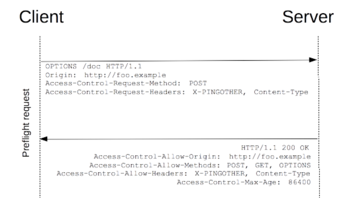 먼저 해당 요청이 가능한지 요청을 보내는것을 preflighted requests 라고 한다.
